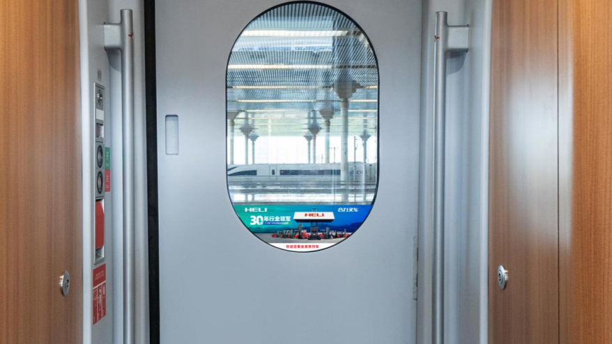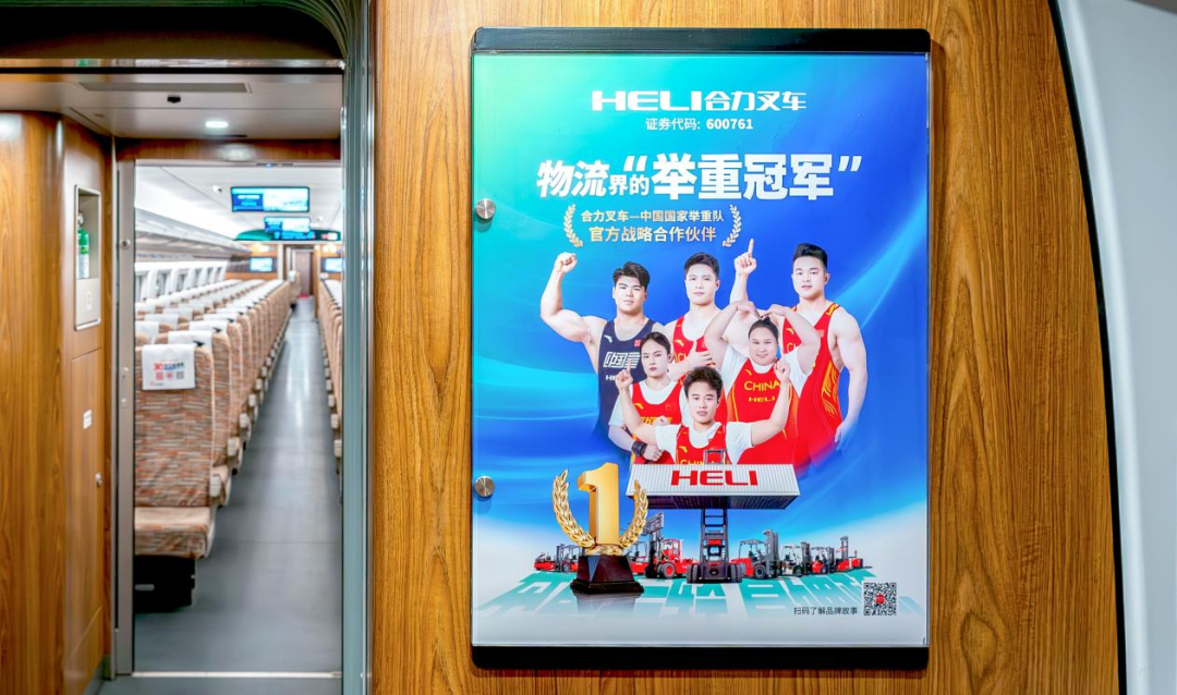 京廣線縱貫南北,隴海線橫跨東西,京滬線客流如織,滬漢蓉線串聯古今,京杭福線融匯人文與自然……列車穿梭不息,在運送旅客的同時也將合力叉車六十多年的專注與三十四載的連冠傳奇生動地呈現在億萬公眾面前。車廂內,頭片、桌貼、品牌天幕等視聽元素交織出沉浸式的品牌空間,讓“合力”成為可信賴的中國制造代名詞。