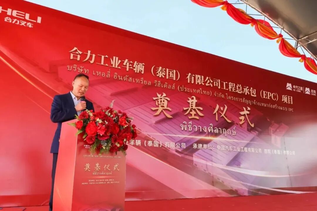 陳先友在致辭中首先代表公司向蒞臨本次儀式的泰國政府官員、各界朋友及合作伙伴表示熱烈的歡迎和感謝。他表示:“合力作為中國工業車輛行業的領軍者,始終以開放的姿態擁抱世界,將國際化視為品牌征途的星辰大海。今天,我們與SMG公司強強聯手,在泰國春武里這片熱土上投資建廠,正是積極響應‘一帶一路’倡議,深度融入全球產業鏈的關鍵落子。這不僅是合力全球化戰略的深化,更是中泰兩國在高端制造業領域優勢互補、合作共贏的生動實踐。它將有力推動合力海外生產供應體系的建設,深化中泰兩國在高端制造業的融合,為合力未來的科技創新與市場開拓,奠定堅實而廣闊的基礎。”