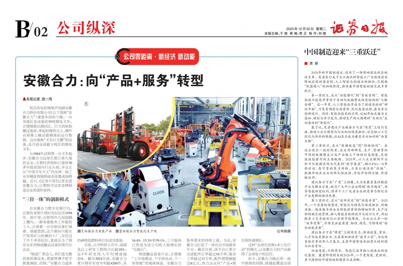 【證券日報】安徽合力:向“產品+服務”轉型