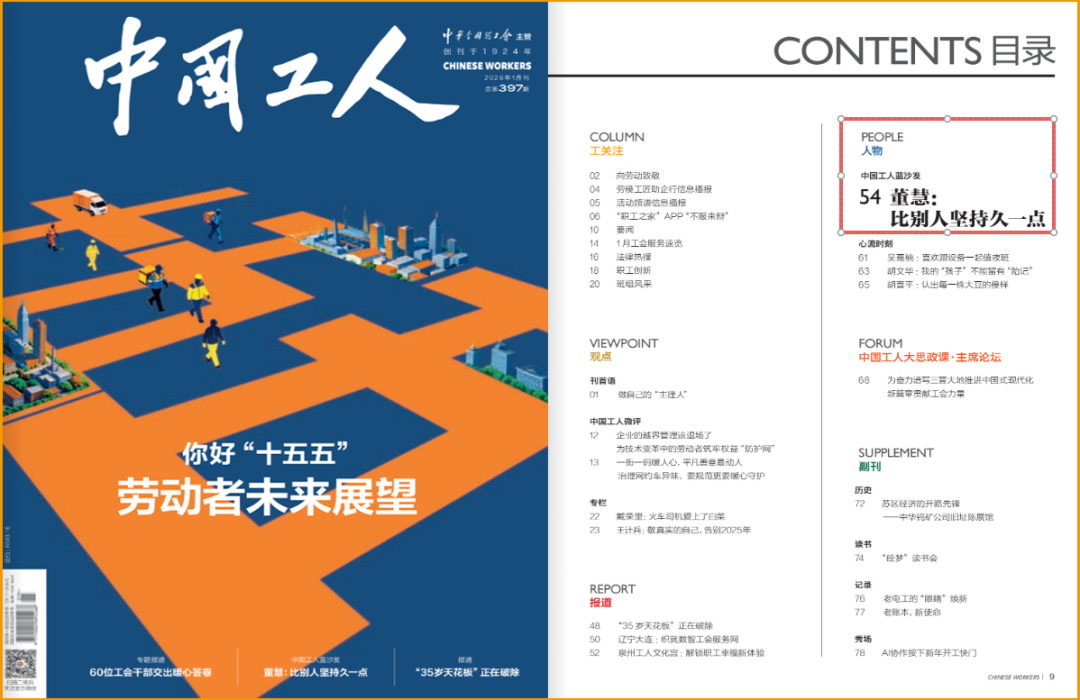《人民日報》   (2026年01月12日 第 06 版)   絕活看點:董慧不僅熟練掌握數控機床加工技術和設備調試工作,還提出了叉車變速箱核心零部件的加工工藝改進方法,大幅提升了軸類零部件加工效率,解決了叉車變速箱核心零部件加工難題,總結出車削大螺距梯形...